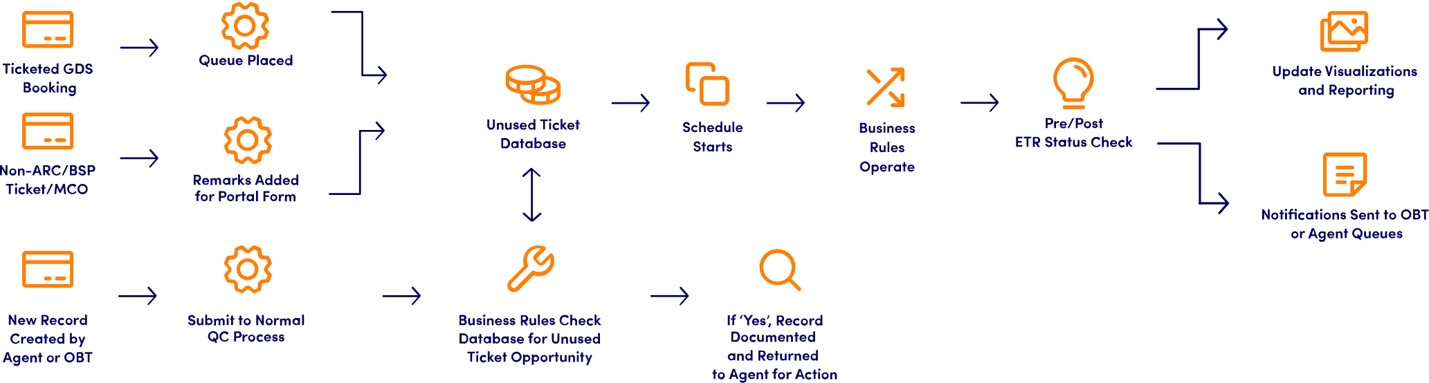 - Automated loading, tracking and monitoring of ticket status pre- and post-travel up to expiration